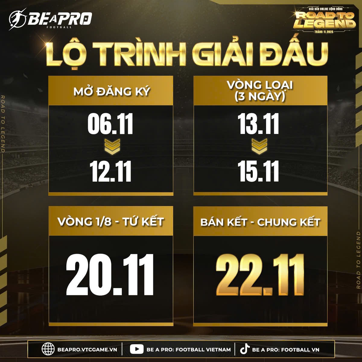 BE A PRO: ROAD TO LEGEND - GIẢI ĐẤU ONLINE CỘNG ĐỒNG THÁNG 11 CHÍNH THỨC KHỞI TRANH