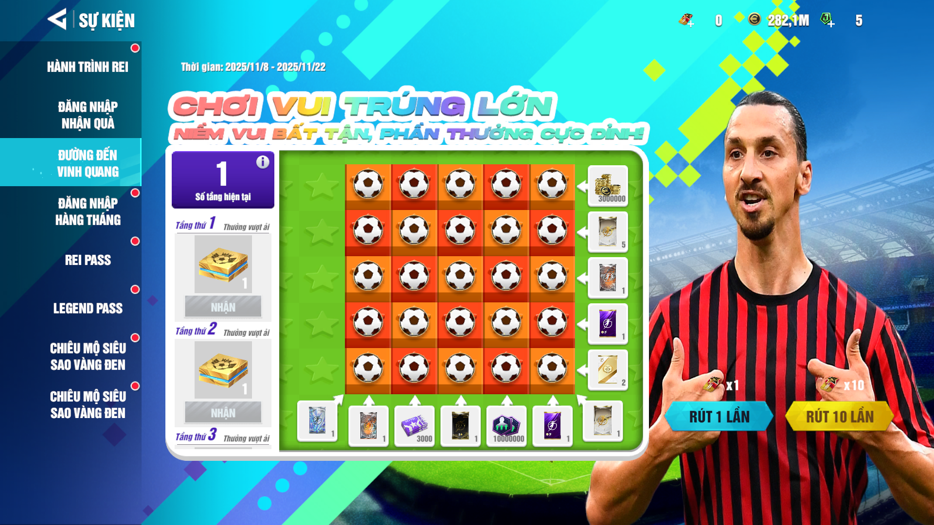 Bước 2: Tích lũy Phiếu may mắn để thực hiện các cú sút bóng và nhận phần thưởng theo tầng.