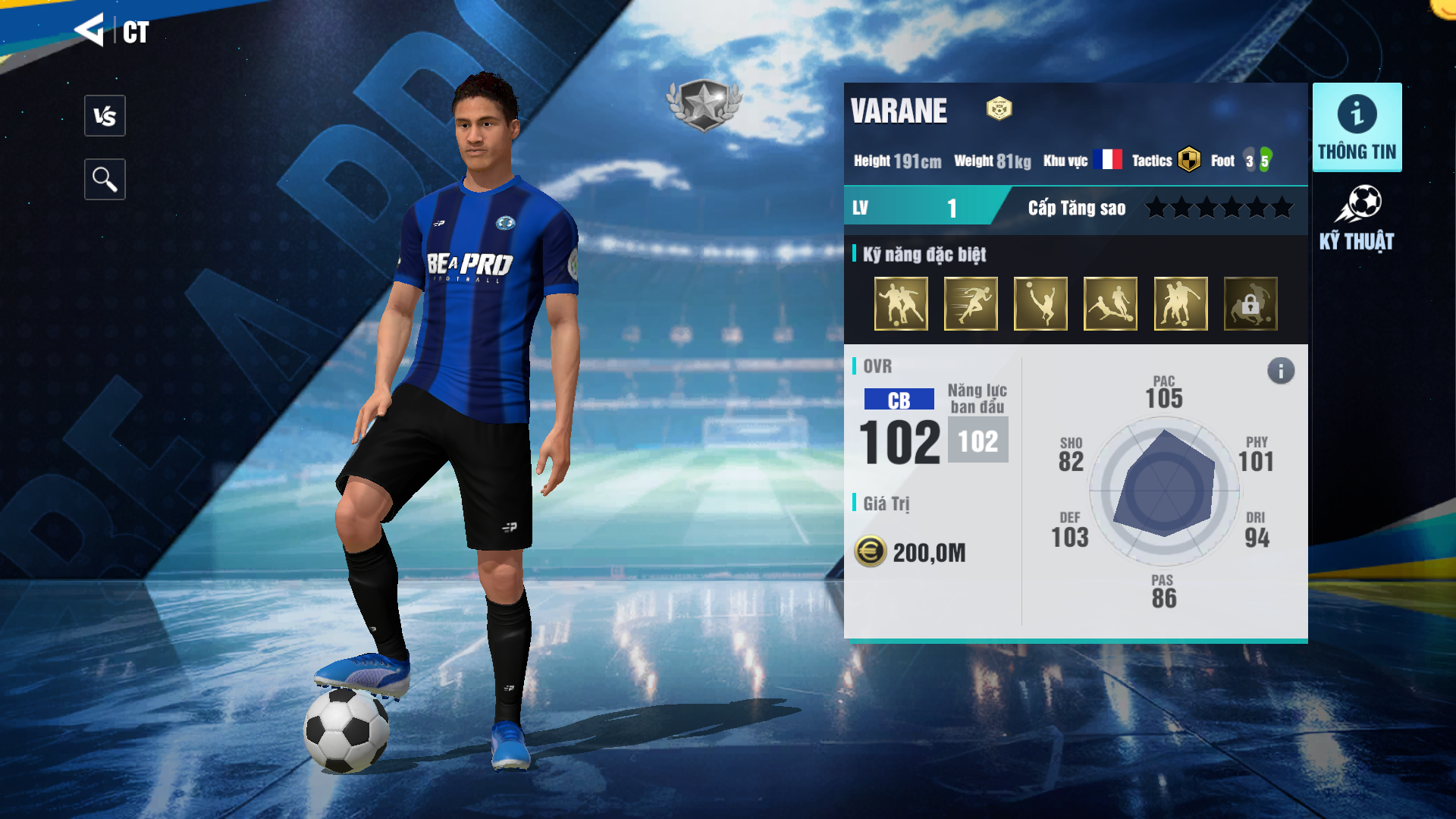 Raphaël Varane mang đến một định nghĩa hoàn hảo về mẫu trung vệ hiện đại: tốc độ, thông minh và đầy điềm tĩnh. Với 4 chức vô địch Champions League cùng Real Madrid và đỉnh cao là chức vô địch World Cup 2018 cùng đội tuyển Pháp, đẳng cấp của Varane là không thể bàn cãi. Khả năng đọc tình huống xuất sắc và tốc độ bứt phá kinh ngạc giúp anh dễ dàng hóa giải những tiền đạo tấn công nhanh nhẹn nhất. Phù hợp hoàn hảo với lối chơi "Phòng ngự phản công", Varane với OVR lên tới 102 không chỉ là một chốt chặn thép mà còn là người thu hồi bóng xuất sắc để mở ra những đợt phản công chớp nhoáng.